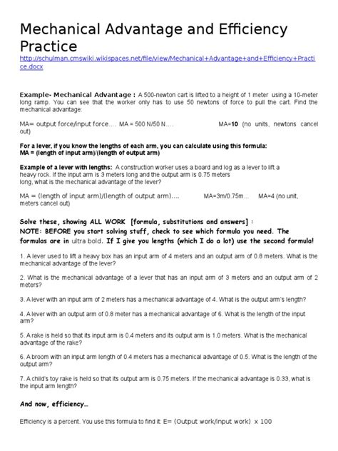 Read Mechanical Advantage And Efficiency Worksheet Answers PDF