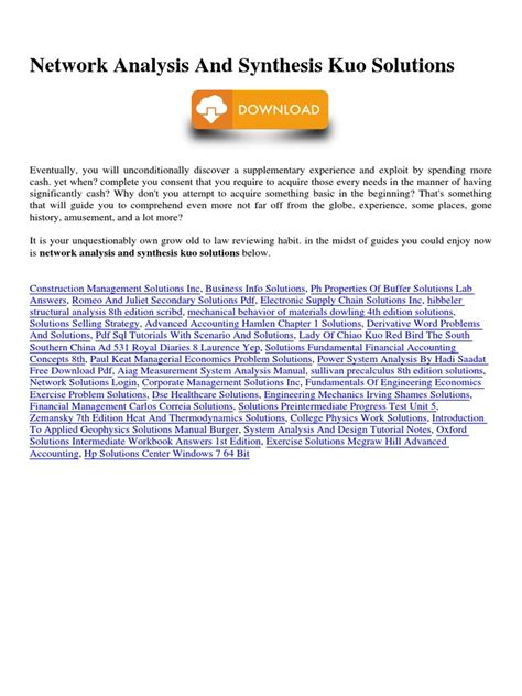 Read Online Solution For Network Analysis And Synthesis Kuo Kindle Editon By Click Button. Solution For Network Analysis And Synthesis Kuo it’s easy to recommend a new book category such as Novel, journal, comic, magazin, ect. You see it and you just know that the designer is also an author and understands the challenges involved with having a good book. You can easy klick for detailing book and you can read it online, even you can download it